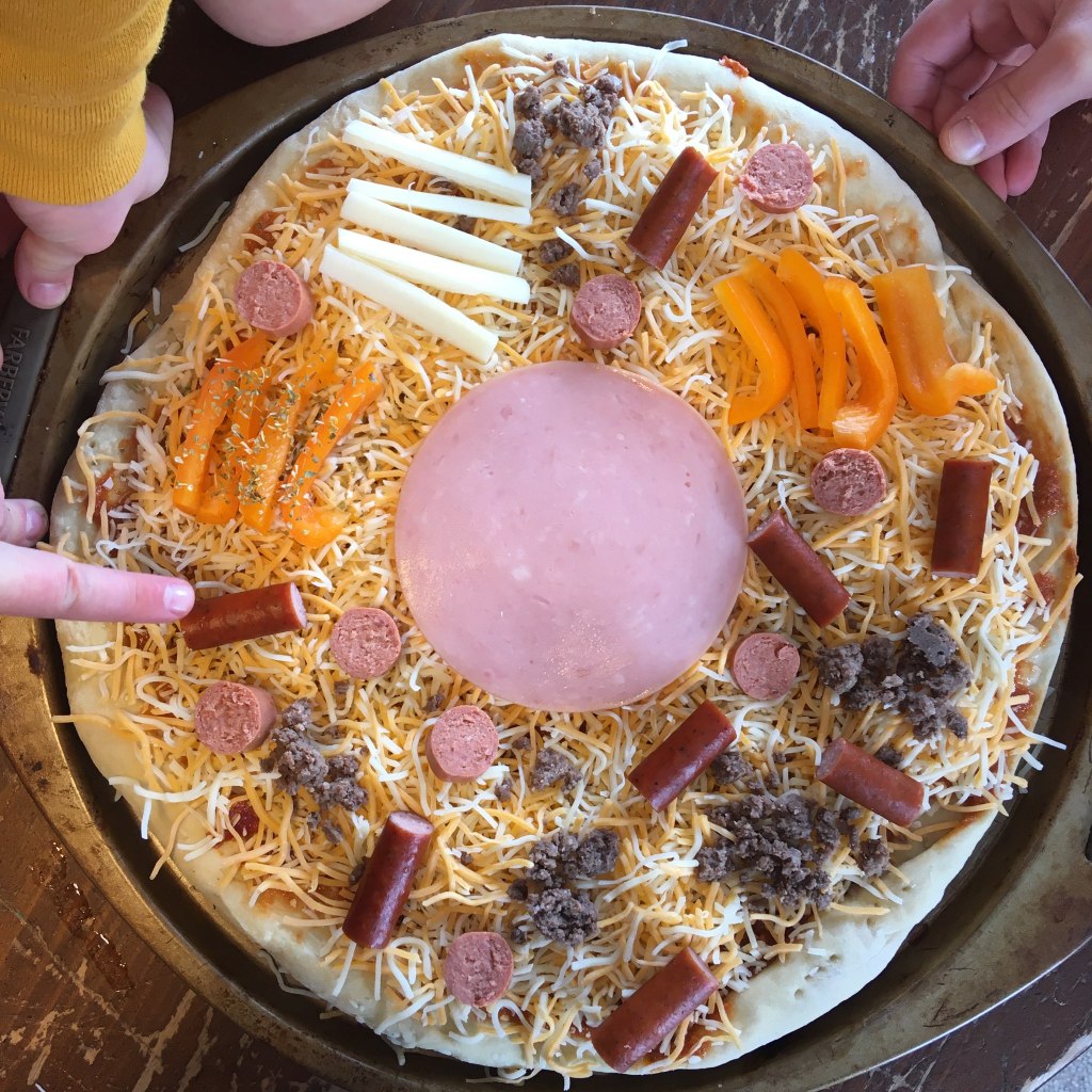 Make an animal cell pizza for lunch (modify as needed – other options would be veggie pizza or fruit pizza, or even a coloring project or 3D model with foam, paper mache, etc.)